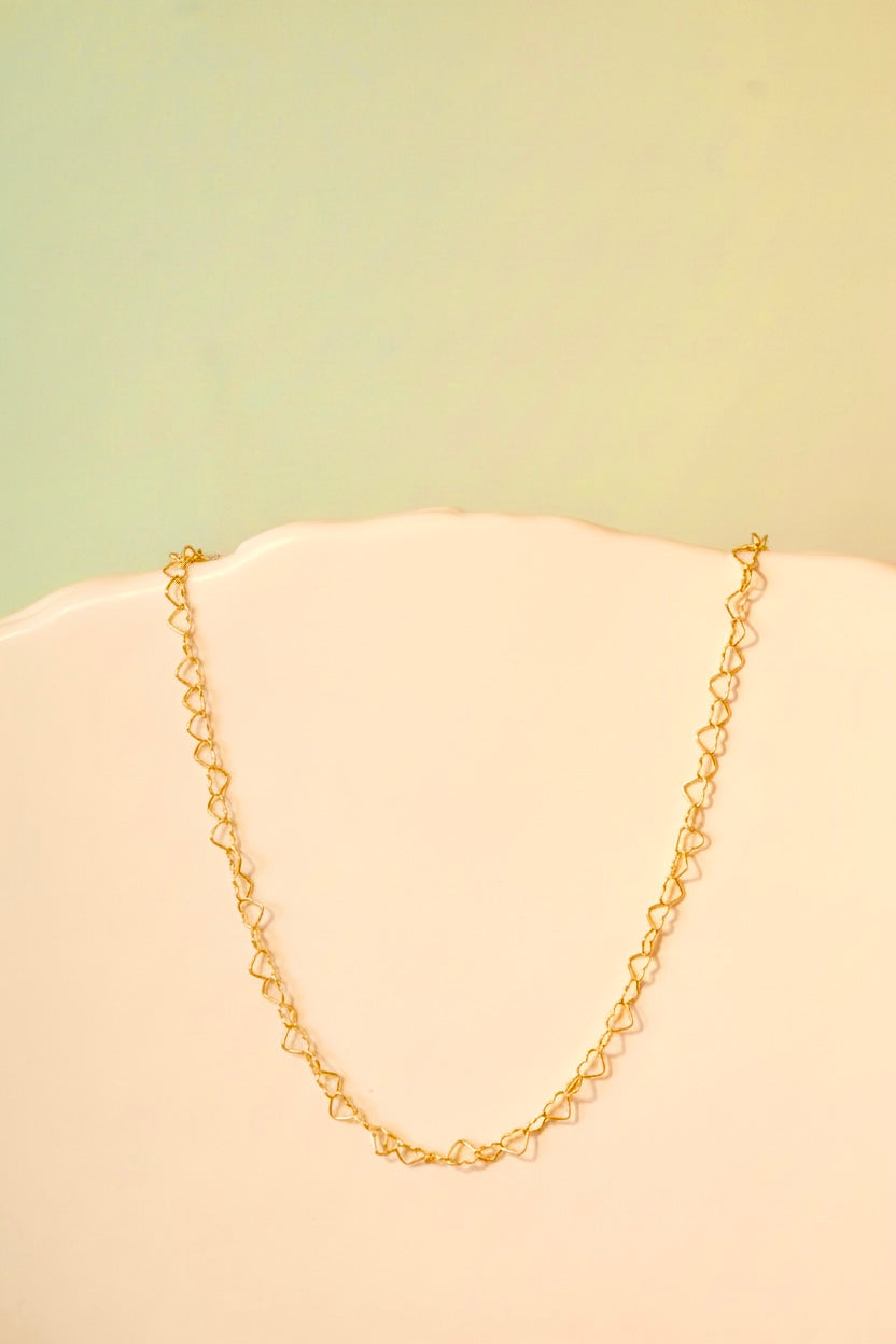 Cadena enlazada con pequeños corazones. Plata bañada en oro 24k. Inspirado en el valor de la amistad.